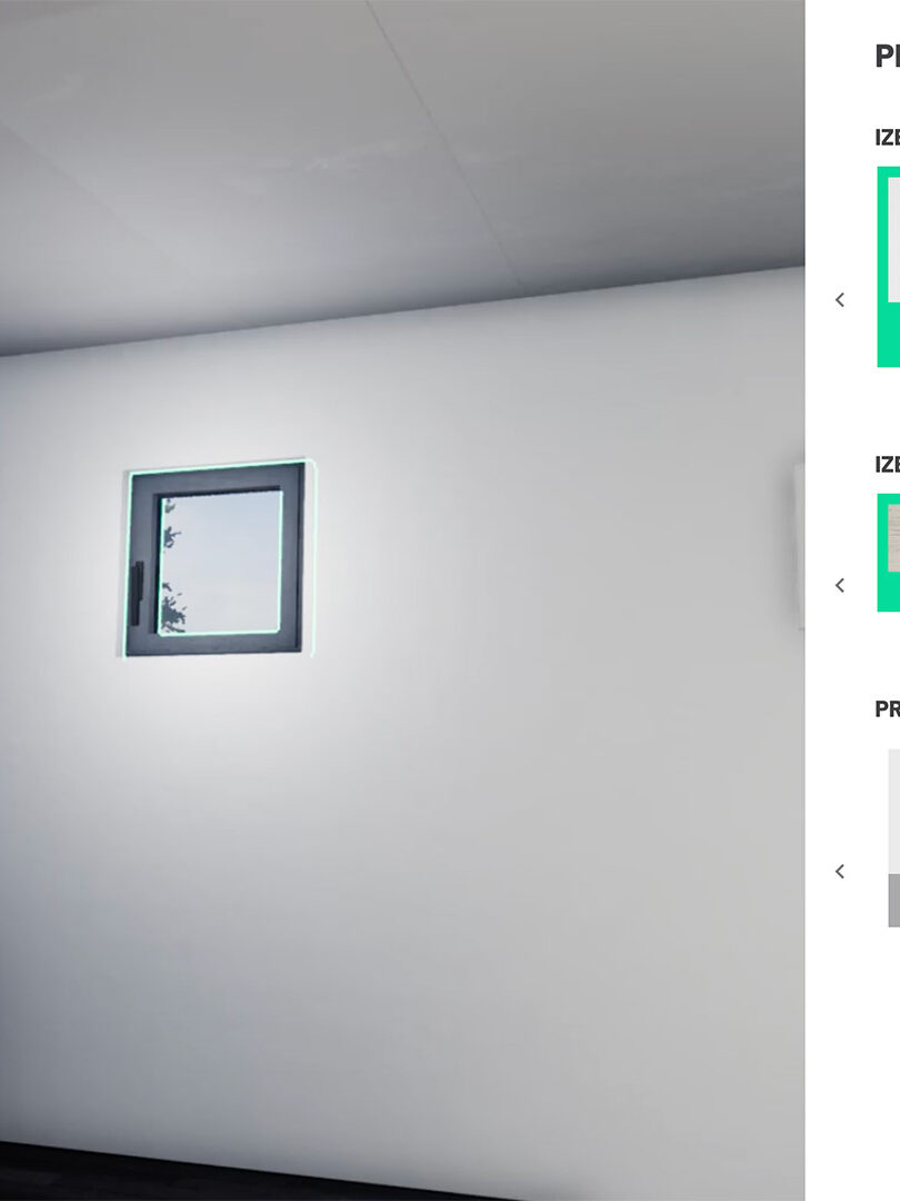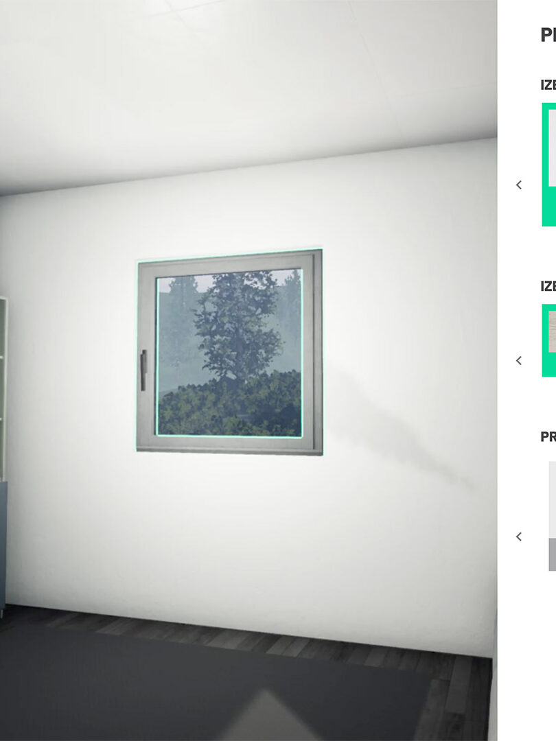 In the project featured here, we are adapting the Configurator feature for our client, who is a manufacturer of doors and windows. Clients are able to change the colour, material and shape of the windows and doors directly in the virtual space. Our Configurator enables clients to change practically everything in the house: the flooring, wall paint, furniture, windows, doors, and are as such ideal for the real estate market – as they provide end buyers with a good understanding of what they are purchasing.